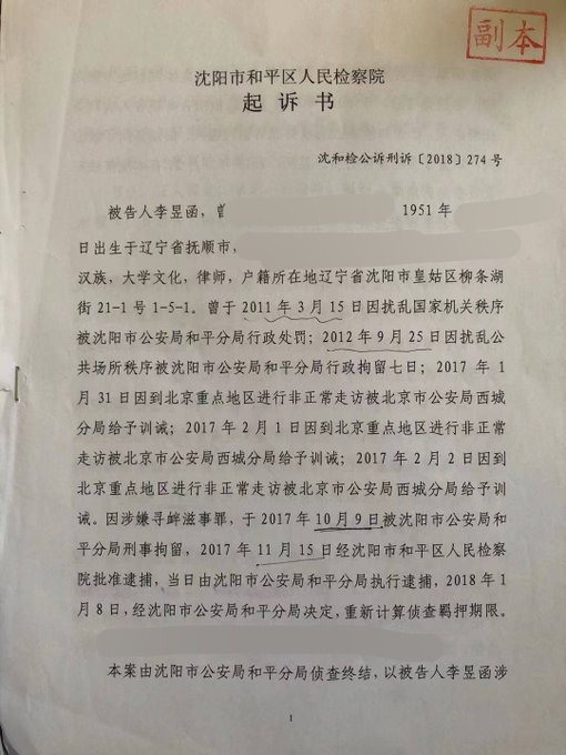 李昱函简介:1951年出生,辽宁省沈阳市人,北京市敦信律师事务所执业律师,原709王宇案代理律师,人权捍卫者,中国在押政治犯。