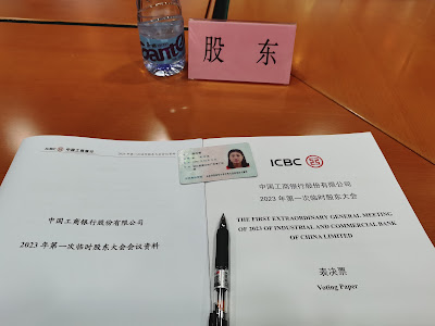 两点钟左右,我和内蒙工行的张振娟、张振敏俩姐妹一行三个人来到工商银行,老远就看到总行信访办李宇州和危处长,及湖北省潜江市工商银行的接访干部黄沙莉严阵以待,我们准备进会场了,听见李宇州说让她们进来吧,便开始安检,复印身份证,然后发给我们一张中国工商银行股份有限公司2023年第一次临时股东大会表决票。