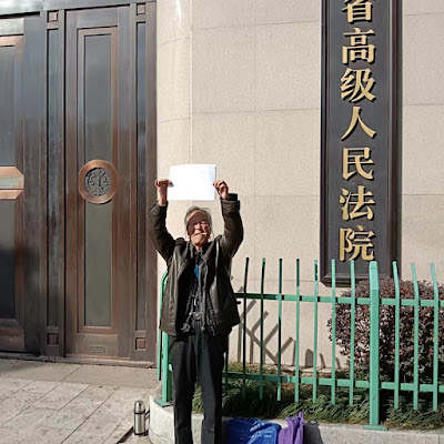 唐兆自从今年“两会”后,发现省高院例行的领导接待日根本见不到领导开始,一直定期对这种作假行为在省高院窗口及大门口,举白纸抗议司法不公,及领导不作为。到5月份因“中亚峰会”被稳控在小区,及此后因访友叶钟的被死亡等因素,抗议活动停止了差不多半年时间。