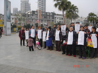 2012年1月16日,听温江其他地方的访民告诉,有四川省人大要到温江接待冤民,结果遭到忽悠,他们连省人大官员的影子都没有看见。2012年1月17日下午1时左右开始,愤怒的村民,来到他们曾经耕种的土地光华大道旁,他们持“要吃饭、要活命”的标语,在光华大道上静坐、示威长达3小时的方式,希望当局能解决他们的吃饭问题,到现在为此,没有一个官员出来解决他们吃饭问题。