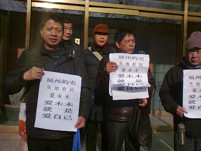 福州屿宅失地农民代表维权代表专程在进京看望艺术家艾未未、并遭囚驻京办黑监狱两天后,于昨日下午安全回到了福州家中