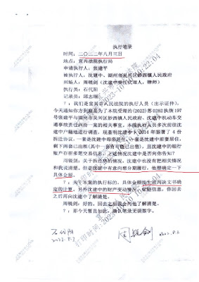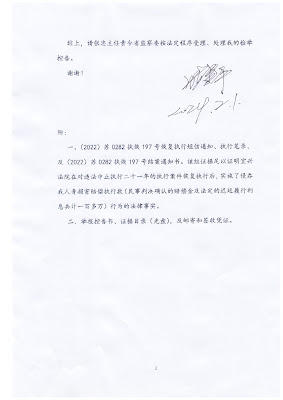 在张建平先生给张忠主任的信中,附了(2022)苏0282执恢197号恢复执行短信通知、执行笔录、(2022)苏0282执恢197号结案通知书,及相应的法律条文,证明宜兴法院在对违法中止执行二十一年的执行案件恢复执行后,实施侵吞他人身损害赔偿执行款的行为,有充分的事实根据和法律依据,是无可争辩的法律事实。