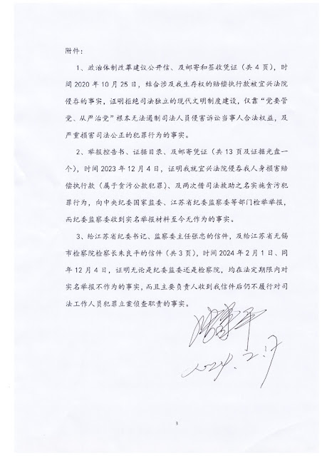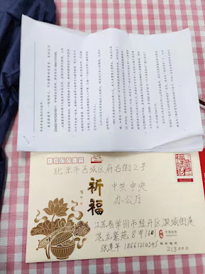 用于建议信寄出后一直没有收到中共中央办公厅或习近平本人的任何回应,考虑到当下进京邮件有可能被拦截、调换的“潜规则”,为了2012年12月4日就提出“努力让人民群众在每一起诉讼中都能感受到公平正义”的习近平总书记,避免在涉及国家长治久安的依法治国上成为当代“叶公”式的人物,张建平先生又于昨天(2月27日)在北京重新向中共中央办公厅邮寄了上述政治体制改革的建议信,及涉及自己经历二十多年司法腐败侵害的(即自己有责任、有义务向中共中央提起涉司法改革的建议)证据材料。