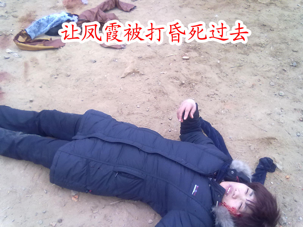 桂芳国走后挖掘机开始拆毁房屋基槽,让凤池等人不敢阻止,他的父母用粪桶盛来人粪尿到处泼洒,遭到“小黄毛”的殴打,让凤池的姐姐让凤霞回娘家看到此情景,质问这些“小黄毛”为什么不在学校里读书,来到这里祸害人,“小黄毛”们便一哄而上拳打脚踢(见照片),当场将让凤霞打得昏死过去(见照片)