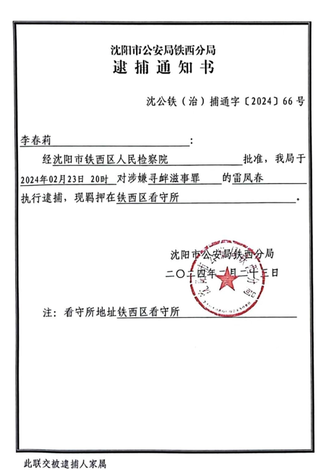 2024年初,雷凤春因到国家信访局多次登记,被沈阳市地方政府强行将他从北京截访回沈阳。回到当地后,沈阳市公安局铁西分局立即于2024年1月19日以涉嫌“寻衅滋事罪”将雷凤春刑事拘留。2024年2月23日,雷凤春被沈阳市铁西区检察院批准逮捕。目前,雷凤春被羁押在沈阳市铁西区看守所。