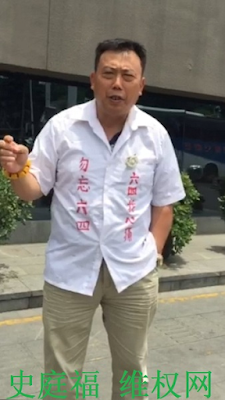 史庭福先生原是南京一位争取私权利的普通访民,1959年生,现年65岁。他是一位在恶劣的环境下一步步成长为热心的维权人士,具有令中共当局恐惧的公民意识,认同三民主义与普世价值观,更是属于街头行动派的一员。他曾在南京中山陵当众喊话到访的原国民党主席的洪秀柱,希望国民党坚守民主理念;也曾现场关注南京维权人士王健被构陷案;更在苏州“4.29”祭奠林昭时被带走。