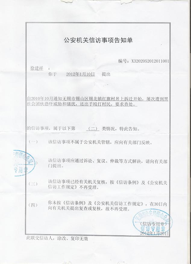 (对涉黑的刑事案件举报,无锡公安却让受害村民们到法院起诉,涉黑难道是民事或行政案件?)