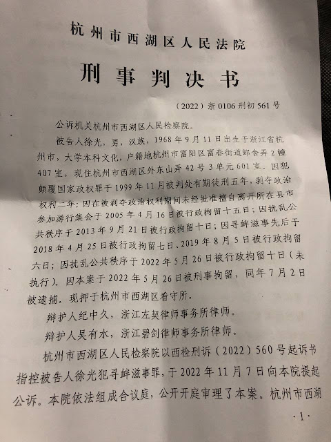维权评论:中共当局倒行逆施 徐秦、徐光、全世欣三位良心犯被连续宣判