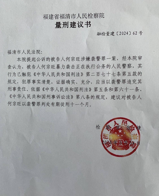 (维权网信息中心报道)2024年4月7日,本网获悉:因关注叶钟惨死案遭抓捕的福建被酷刑致残的人权捍卫者何宗旺所谓袭警案将于2024年4月12日在福清法院开庭,检方求刑11个月 。