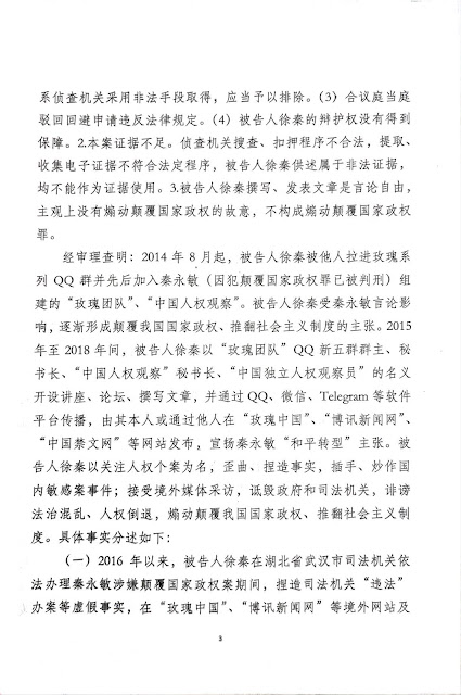 徐秦简历:女,民间维权组织“中国人权观察”前秘书长,“玫瑰团队”成员,人权捍卫者,中国在押政治犯。