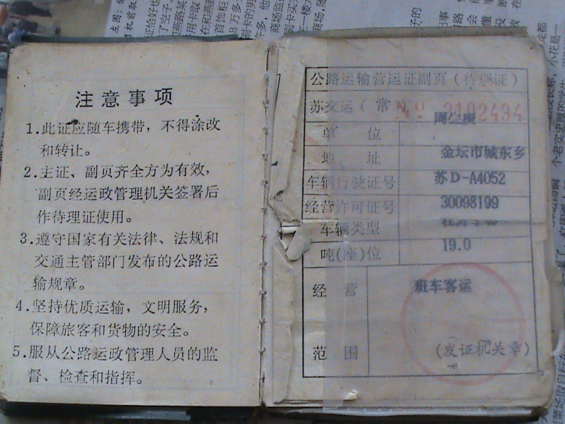 (虞春梅和表弟兄周生庚的中巴车营运证)