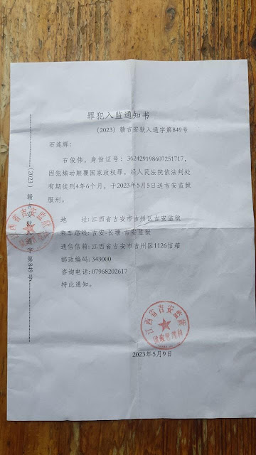 中共通过国际刑警对石俊伟发布了红色通缉令,导致他于2020年6月17日被马来西亚警方抓捕,并于2020年9月23日被押送回中国继续关押。关押期间,中共不允许家属聘请律师,不允许合法探监,对石俊伟实施了酷刑虐待。2023年,石俊伟被中共法院以煽动颠覆国家政权罪重判4年6个月有期徒刑,目前关押在江西省吉安监狱。刑期至:2025年3月22日。