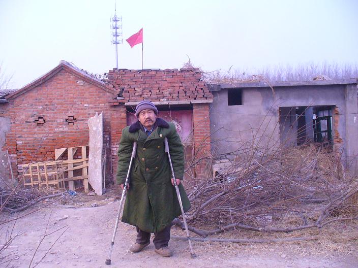 (妻子张淑凤手举“我要立案”在北京市高级法院)(丈夫张德利柱双拐保护家园)