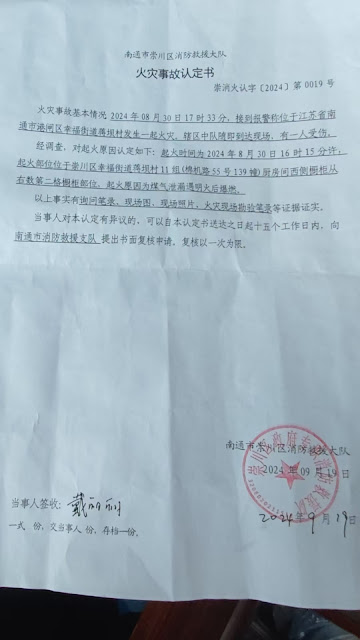 (维权网信息中心报道)2024年10月28日,本网获悉:2024年8月30日16时15分,江苏省南通市幸福街道蒋坝村11组(棉机路55号139幢)戴丽丽老太厨房间煤气爆炸,导致戴丽丽老太受伤,部分衣物损毁。戴丽丽老太报警。公安消防安检部门共20多人陆续赶到现场,进行调查。