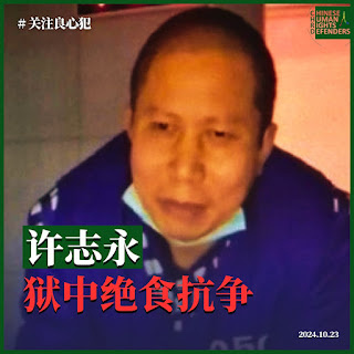 厦门聚会案关注组:许志永已经持续绝食30天的相关信息通报(2024年11月3日)