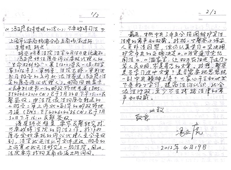 请朱所长督查,要求民警转交我,不要妨碍法院的司法工作。我作为原告全权委托代理的诉讼代理人至今未收到法官就无法认可文件送达,被告的上诉案也就无法移交上一级法院。因此,法院要求我向五角场派出所询问。