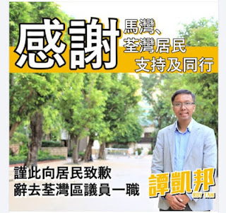 2015年香港区议会选举,其以新民主同盟身份参选,并高票当选荃湾区议会马湾选区议员;