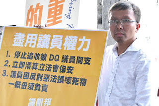 谭凯邦:1980年5月17日出生,英语名Roy TamHoi-pong,原英属香港籍、现中华人民共和国(香港)籍人, 香港中学教师,香港“环保触觉”(属政治党派)创办人,前新民主同盟成员,前香港荃湾区议会马湾选区议员,社会活动家,泛民主派人士,中国在押政治犯。