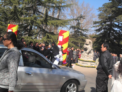 今天清明节,吉林四平市访民肖蕴苓和长春市访民丛东明上午到八宝山革命公墓门前拉条幅撒传单喊冤。据悉,肖蕴苓是因为儿子郭洪伟被公检法司联手制造假案打击报复。