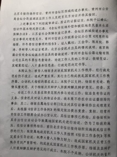 (维权网信息中心报道)2025年9月13日,本网获悉:据流亡日本的杨彩英女士通报:2025年9月12日,金坛区人民法院副院长刘丽疆、该院刑庭副庭长王囡囡,宣布冤判我母亲许冬青1年2个月,我妹杨丽1年3个月。该判决将我母亲和妹妹找中共党魁习近平控告江苏官员田洪和落马官员陈金虎侵犯人权、要求保障就医权利的行为认定为对征地和司法不公等信访处理结果不服而进行所谓的非访;将金坛黑警多次殴打、绑架不让我母亲和妹妹看病的行为认定为“劝返”;将暴力截访黑警和信访官员挥霍的巨额维稳经费和口述认定为判决依据。