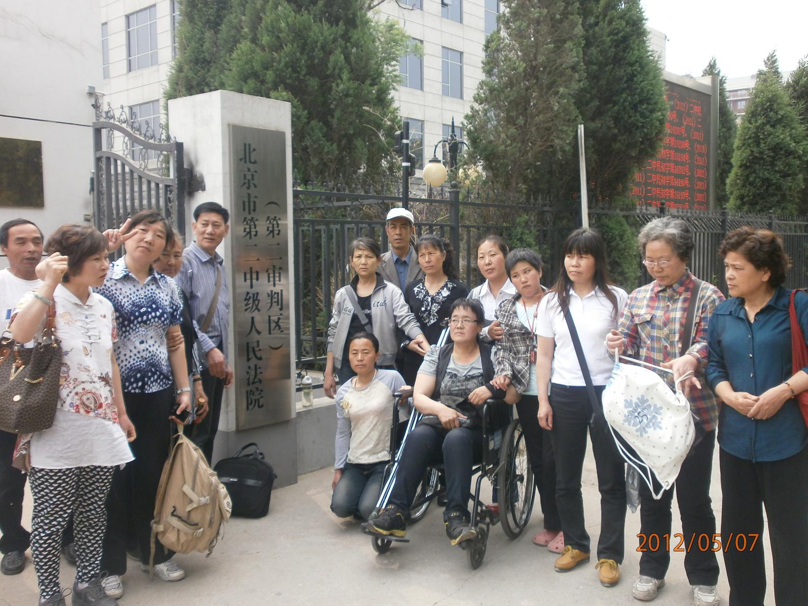 在京访民到法院声援葛志慧诉丰台区公安分局 2012-05-08 权利运动编辑 (2012-5-8)权利运动发布: 昨天上午,王苗苗、林秀丽、张福英等三十多位在京访民前往北京市第二中级法院,声援和支持在强拆中被打残疾的葛志慧状告丰台公安局违法行政一案。法庭没有当庭宣判。 葛志慧电话:13261499836。 沙同梅电话:13031140859. 关维双电话:15611796846. 此信息由权利运动司法公正观察项目编辑 分享这篇文章到: