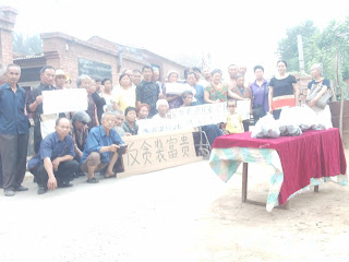 (2012-6-23)权利运动发布: 今天是农历5月初五,传统的端午节。上午,沉寂了两年多的全国知名维权人士赵春红再度出山,到北京吕村看望含冤上访的弟兄姐妹,为她们送去粽子。今天在吕村聚会的有吴田丽、黄光玉、宋玉杰夫妻等几十位访民,她们拉起“访民比屈原还要冤”的横幅,并呼喊“打倒贪官”、“打倒腐败”等口号。