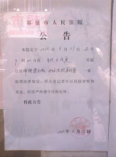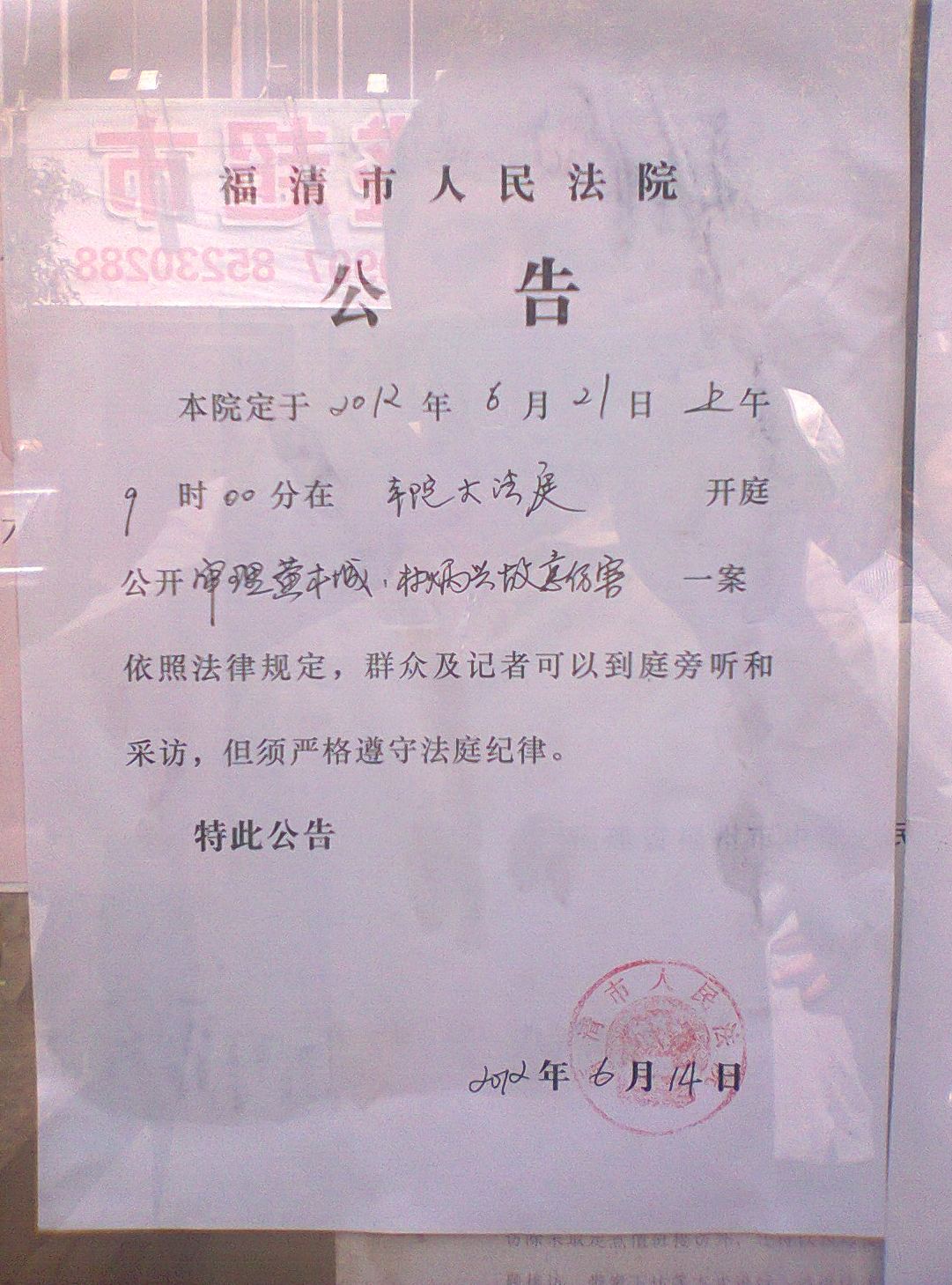 2012年6月21日上午,福州冤民林兰英、林祥官、张晓红、罗丽华、林炳兴、卓道明、林应强、魏英、刘玉钗、吴京、陈依香、戴香珑、郑伯榕、张晓红、罗丽华、唐兆星等众冤民一百多人齐聚福清市法院,要求依据法院公告旁听上午9时法院公开开庭审理的林炳兴故意伤害案,声援受害人林炳兴。但,访民们要求进入法庭旁听时,却被拒绝门外。整个福清市的街道公路三步一岗五步一哨的阵式。