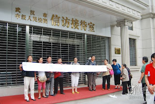 武汉市江汉区花楼街700多被拆迁人联合诉政府不法强拆的行政诉讼案在拖延长达四年之久,终于2012年6月12日在江汉区人民法院立案,并于昨天(7月22日)星期日上午9时在江汉区人民法院公开开庭了审理该案。由于当局设置障碍,审理未开即终。