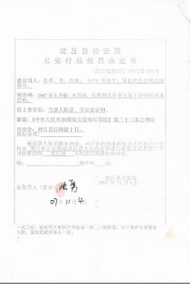 2008年,为了生存,我再一次外出打工。6月份,为了防止我上访,地方政府要找到我的人才放心,沈丘县动用公安,把我父母带到刑警队验血,说死了人可能是我;到我岳父家说我可能死了,拿到电话打到我打工的地方。面对无法无天的行径,出离了愤怒的我,打电话责问负责的警员:“要是我犯法了,可以发通缉令,要是想抓我,现在就可以到公安局,你们凭什么用如此卑鄙无耻的手段传唤我的父母和亲戚”?警员说:“你没事,这是领导的安排”。当我追问哪位领导的安排,警员却以“不要问了”挂断电话。