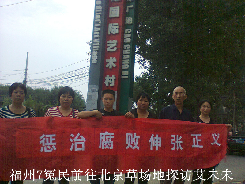 众冤民知道艾未未先生是中国著名的艺术家,因平常非常关注弱势老百姓的维权活动而曾受到不当对待。虽然今天晴空万里,酷热炎炎,可福州众冤民仍冒着酷暑到北京草场地258号探访艾先生,一为探望表示关切和支持,另一为寻求艾先生帮助维权。