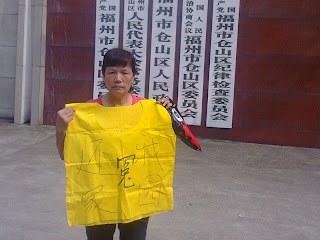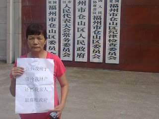 福州冤民张秀屏,一个弱女子,家住福建省福州市仓山区城门镇浚边村9号。张秀屏曾经两次自杀,8月28日含冤刚从劳教所“解教”出来,即到中共仓山区委员会大门口,控诉这个最腐败的政府。