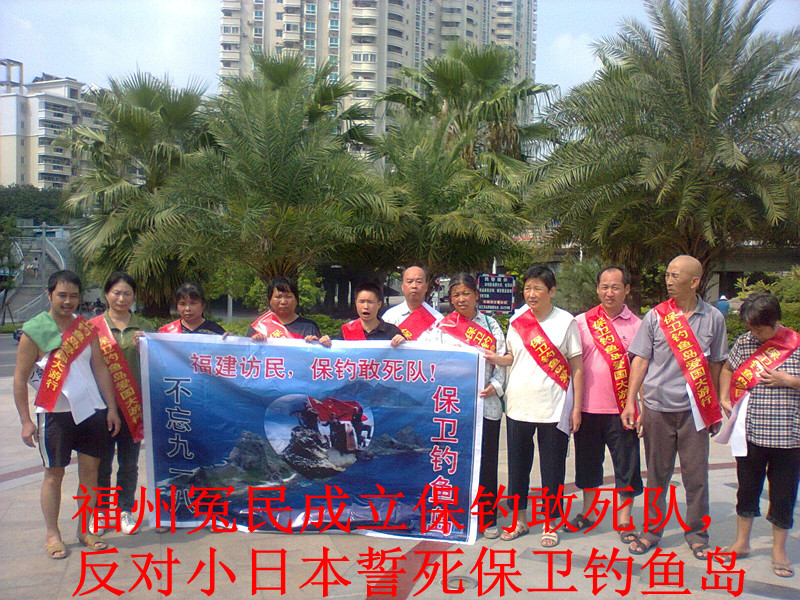 钓鱼岛及其附属岛屿,自古以来就是中国的固有领土。小日本觉得中国政府总是“搁置争议”的主张软弱可欺,擅自非法“倒卖”中国钓鱼岛,福州众冤民绝不答应!虽说众冤民都是深受福州黑司法之害、屡遭报复迫害都被逼上了绝路,但作为一个中国人,炎黄子孙,也是个个铮铮铁骨,保疆卫土义不容辞!