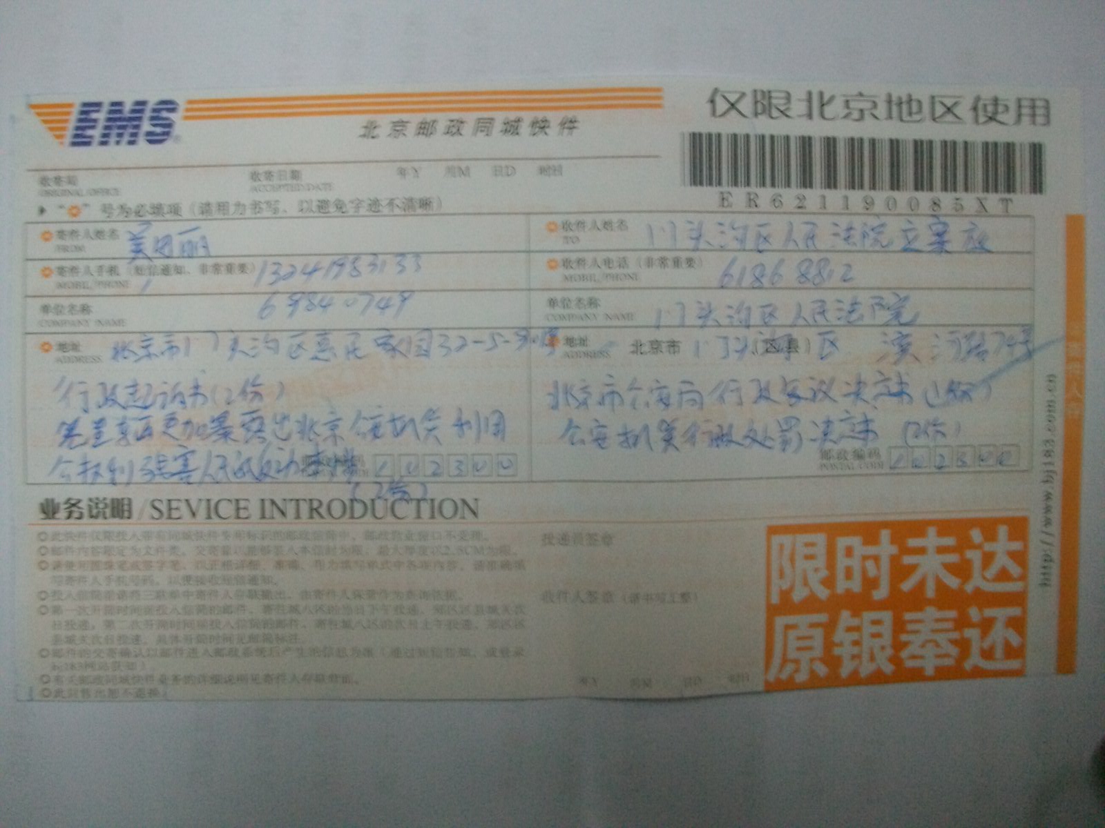 原告:吴田丽,女, 1965年11月29日出生,住北京市丰台区长辛店教堂胡同98号,联系电话:13241923133。