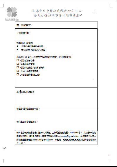 香港公民社会研究中心推出2013年度公民社会​访问学人计划申请