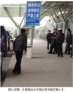 期间,2013年3月13日中午12点,在无锡东站守候的孙静芳家人目睹,G101次列车到站后,孙静芳被十几个黑社会人员强拖上了车牌号为苏B2582B的黑色面包车,这些黑社会人员驾驶的车辆还有:苏B2562B、苏B2563B。此后,孙静芳即被关进了黑监狱,至今下落不明。