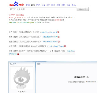 我本有自知之明,国内不会允许我在博客上发文。为了求实,还是做了个实验, 2013年3月8日,我在开通的新浪博客上发文,次日又把今年在海外发的五篇文章挂了上去(见注)。结果不出所料, 3月11日我的第一个实名博客被枪毙,博客上出现:“此博客已被关闭”的信息(见图片)。