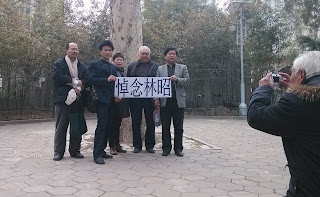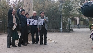 今天几位朋友冲破公安的阻挠,成功到济南中山公园,举起了“悼念紫阳”、“悼念孙中山”、“悼念林昭”的横幅。