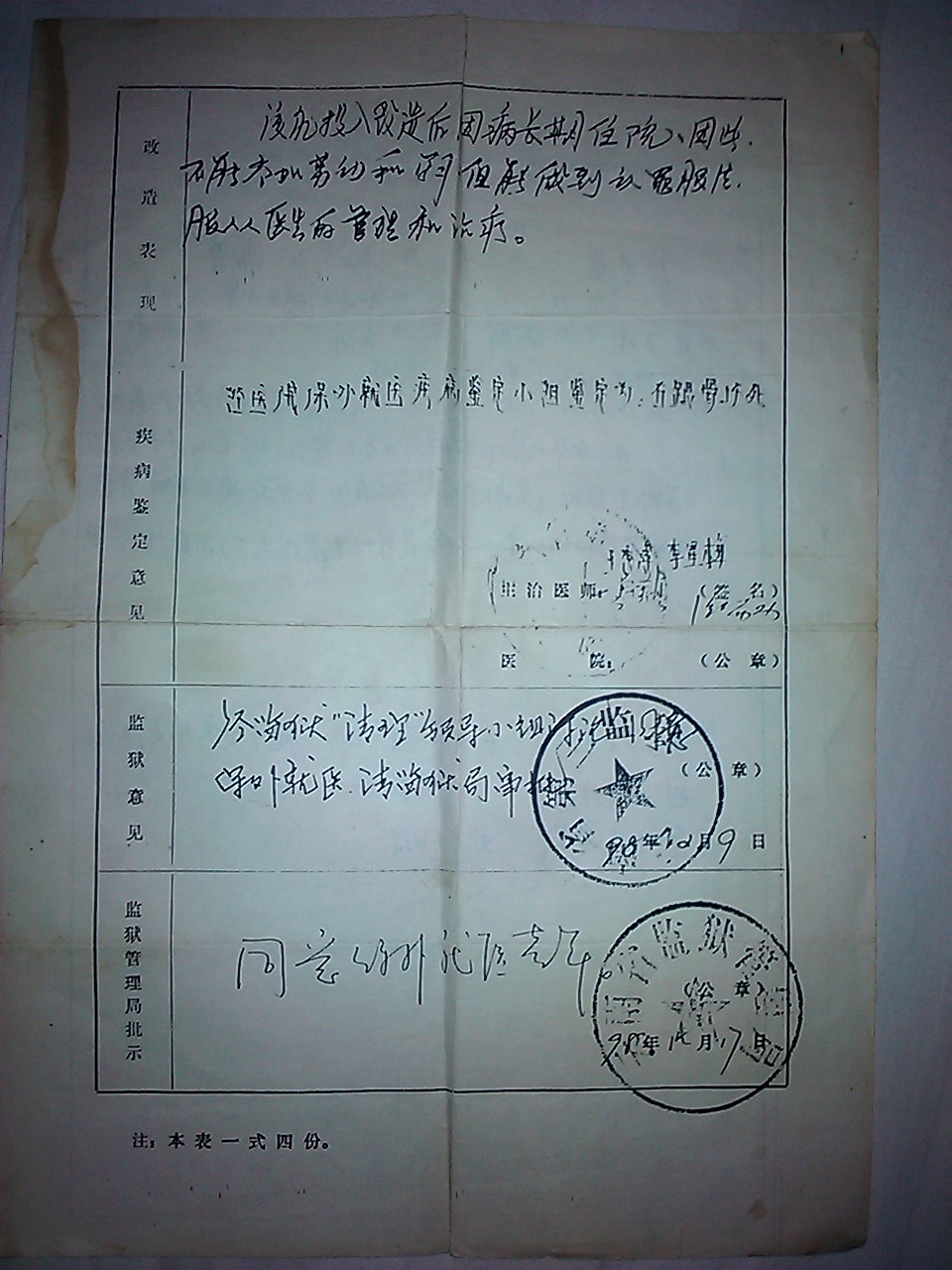 1998年给我减刑为有期徒刑18年6个月,并将我保外就医,同时安宁监狱向我做出了永不收监的口头承诺。也将我的服刑改造关系转到了甘肃省临夏监狱。保外后伤情继续恶化,不得已动手术将右脚跟骨摘除,以至本人终身残废。