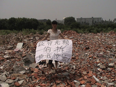 (王品仙女士在得知房屋是当局雇佣黑社会人员于深夜偷偷拆除的消息后,愤怒地控诉当局的黑暗)