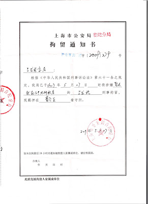 虽然那次谈话使得那位所长被我说的无言以对,但他所言并非空穴来风。最近中国冤民大同盟副总干事吕龙珍却在5月27日被上海市公安局普陀分局在人民公园用手铐铐走了并遭刑事拘留,这是十分明显针对中国冤民大同盟的一次行动。现将刑事拘留通知书上传,请海外媒体、国际社会密切关注此案,也吁请中国冤民大同盟主席派律师过问此案,并引起警惕。因为中共已撕毁了脸皮向中国冤民大同盟开刀!什么《国家人权行动计划》,他已容不得任何政党社团的存在,这就是事实。