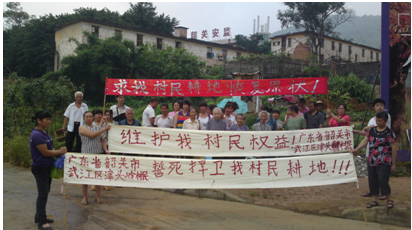 据村民代表反映,该集体土地在1993年被村委会几个人私自倒卖,开发商根本没有项目,就一直抛荒囤积至今。而生活无着的村民们就种一些蔬菜。为此,村民代表陈君玉、陈春兰、陈云梅、陈荣秀、何招妹于2013年7月23日到广东省信访局反映,不料仅仅三天时间,开发商就要用大型机械“施工”实行侵占,想破坏土地形成既成事实。